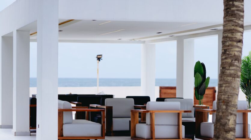 The space features open interiors, expansive areas for gatherings, and direct access to a calm coastal setting – perfect for celebrations, parties, or private get-togethers.